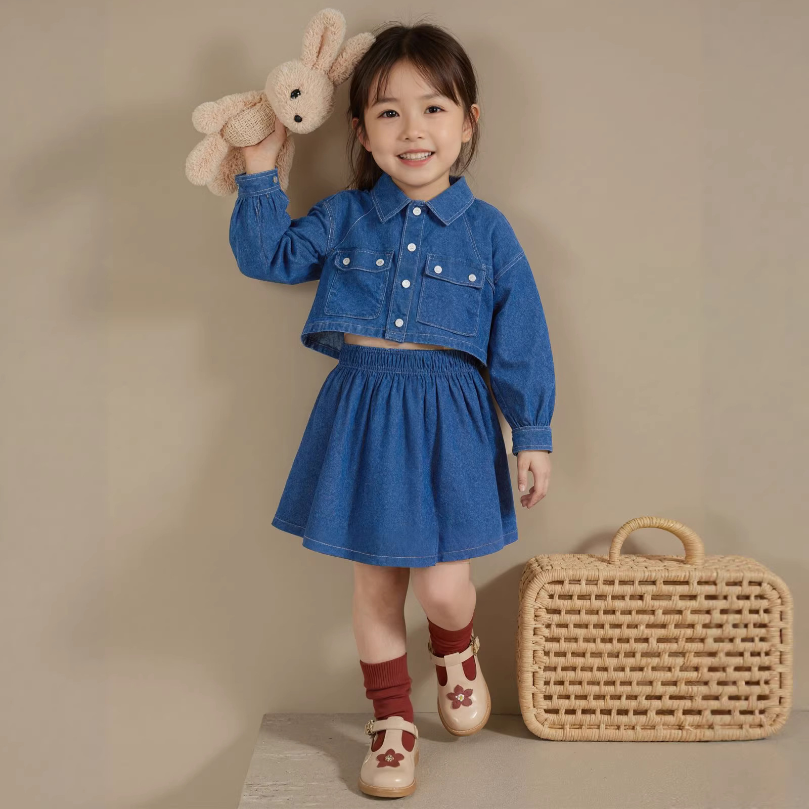 2026春秋新款女童套装牛仔童装洋气女宝上衣外套休闲短裙女两件套