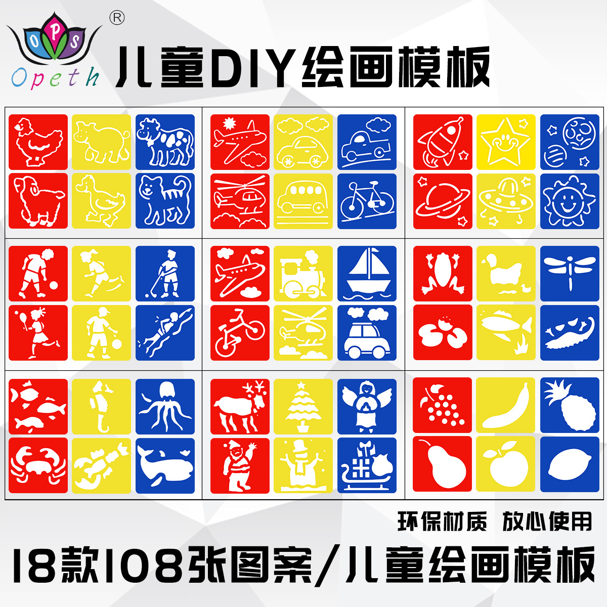 玩具使用说明:每套6张3种颜色.将模板紧贴在纸上,用笔在镂空处沿着轮廓描线,将模板拿走,就能看见你想要的物体的轮廓,沿轮廓剪下来。其功能在于让孩子学会朝一个方向用笔。引导幼儿感受各种美术材料和工具的特性,尝试利用它们的形状与质地等特点大胆修改、添加、组合,设计和制作有趣的物体。幼儿可以随意使用颜料,水彩笔,蜡笔来绘图,模板是可以水洗的,可以反复使用。培养孩子的手眼协调能力,培养孩子做事耐心的习惯,培养幼儿沿虚线剪的能力。