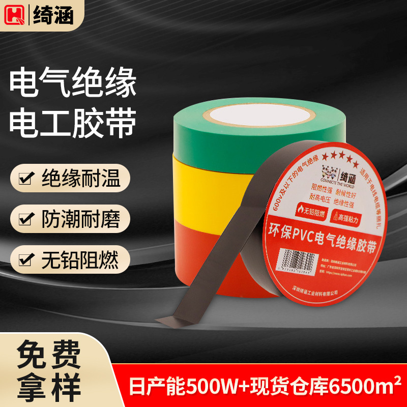 絶縁電気テープ卸売り静電気防止黒色耐高温PVC防水耐摩耗難燃電気電気テープ