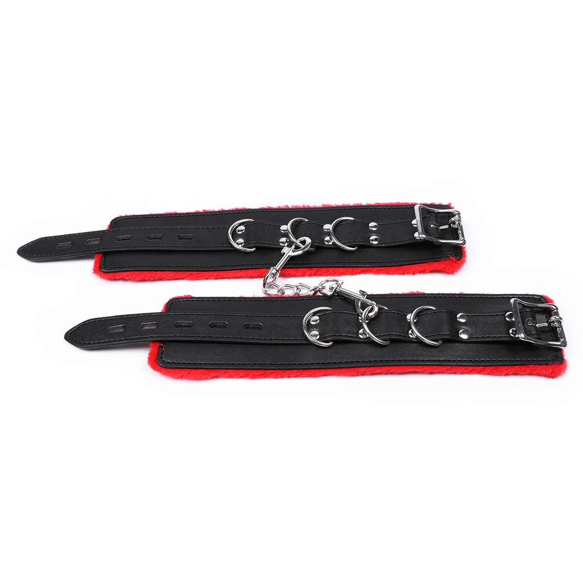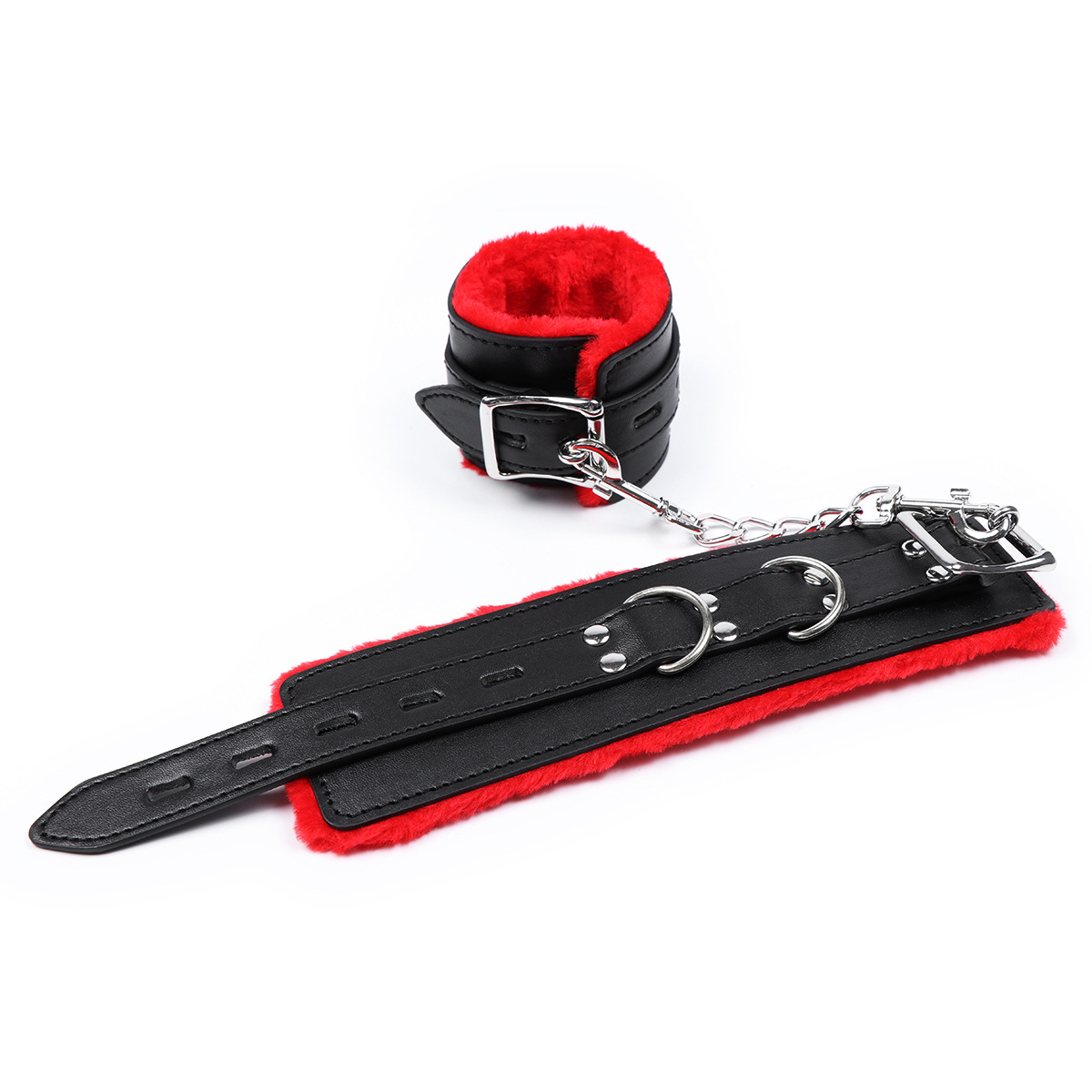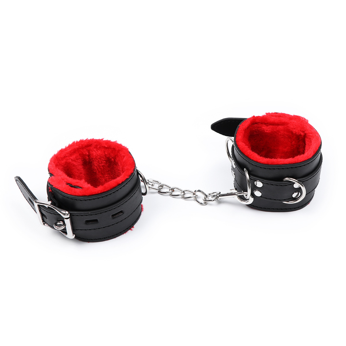 卸売りスポットの赤いぬいぐるみの手錠は、趣味用品の黒い革の縛り玩具の手錠をかけることができる