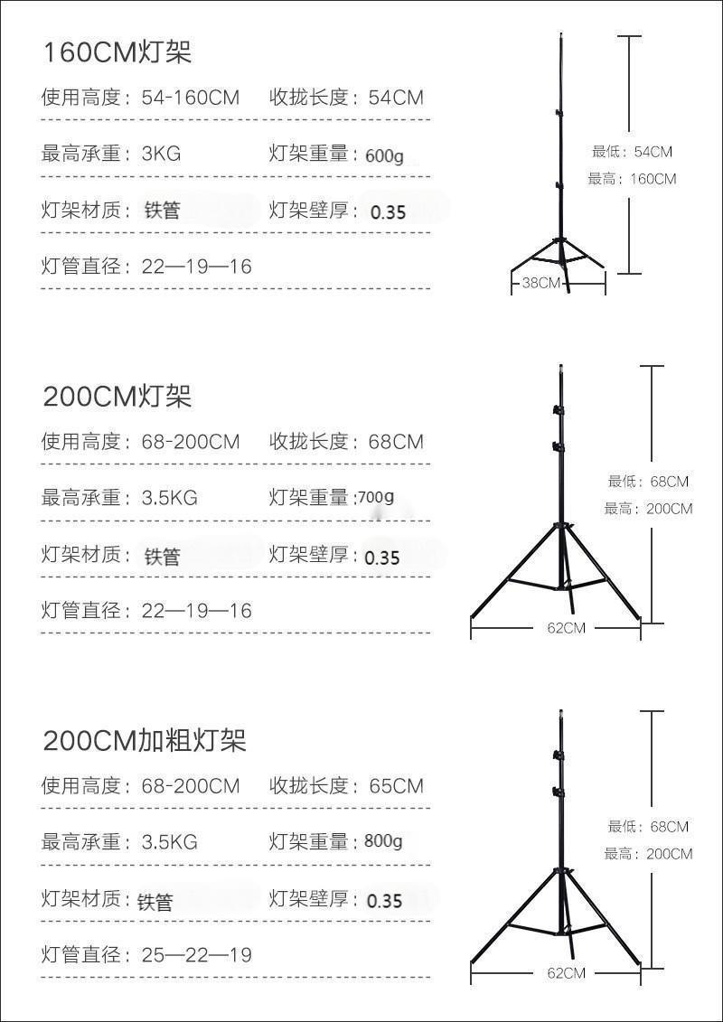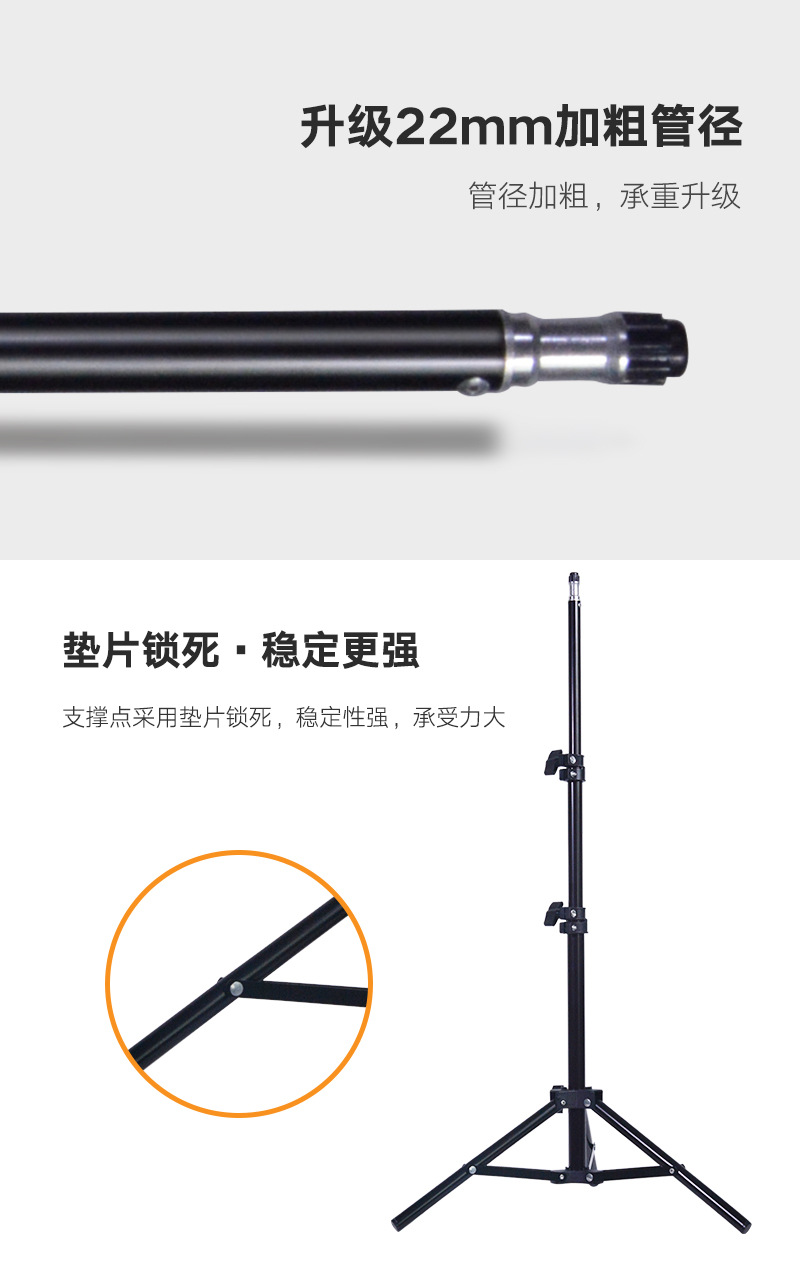 2.8米不锈钢灯架加厚全金属加粗补光灯支架多功能背景架摄影灯架