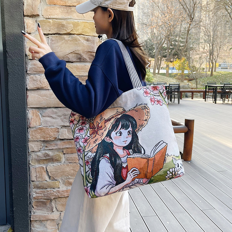 生放送用女の子向け刺繍布バッグ、漫画バッグ、可愛いショルダーバッグ、学生の塾バッグ、手持ちママバッグ、ショッピングバッグ