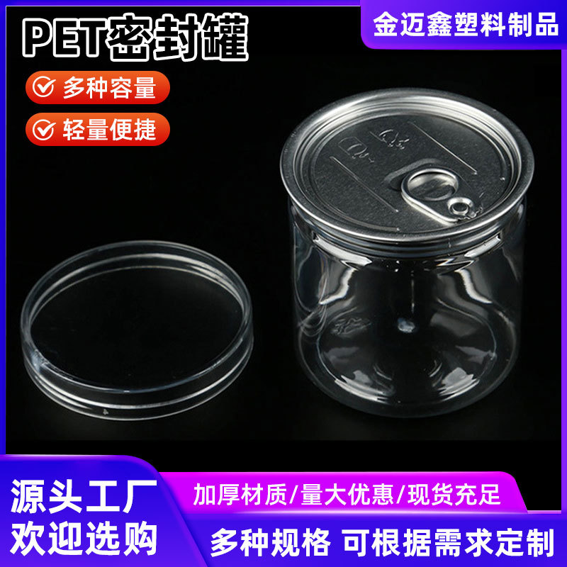 我司专业生产塑料易拉罐 螺旋盖易拉罐 奶茶罐 胶罐 广口瓶(厂家直销)。PET的易拉罐结构:光亮、透明的PET罐身,上面采用铝合金易拉盖封口,(易拉盖有独特的防划手安全边)再加盖PE透明塑料盖或者PP,让您的产品更显通透高档。PET透明易拉罐包装,透明的包装可以让消费者直接看到饮料的内含物,强烈冲击视觉,大大提高了您的产品的包装档次和附加值。本品适用于各种干果,五谷杂粮等等食品包装,欢迎新老客户来电洽谈。