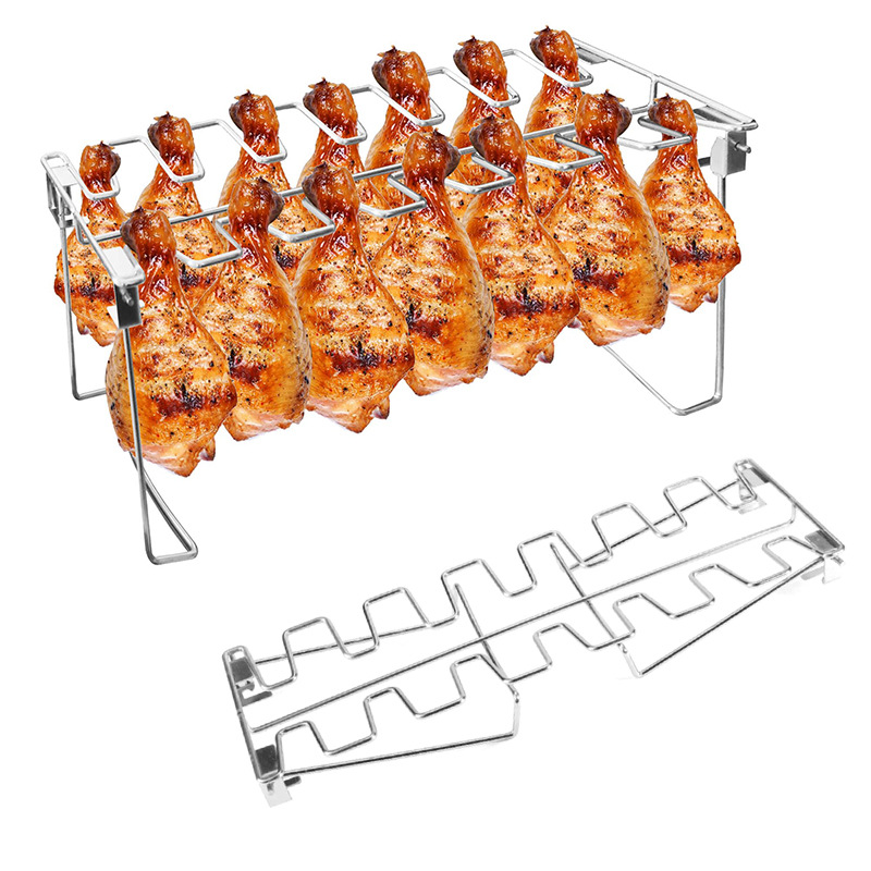 430ステンレス製チキンレッグスタンド 折りたたみ式バーベキューグリル 14グリッド チキンレッグ用グリルトレイ付き バーベキュー用グリルトレイ