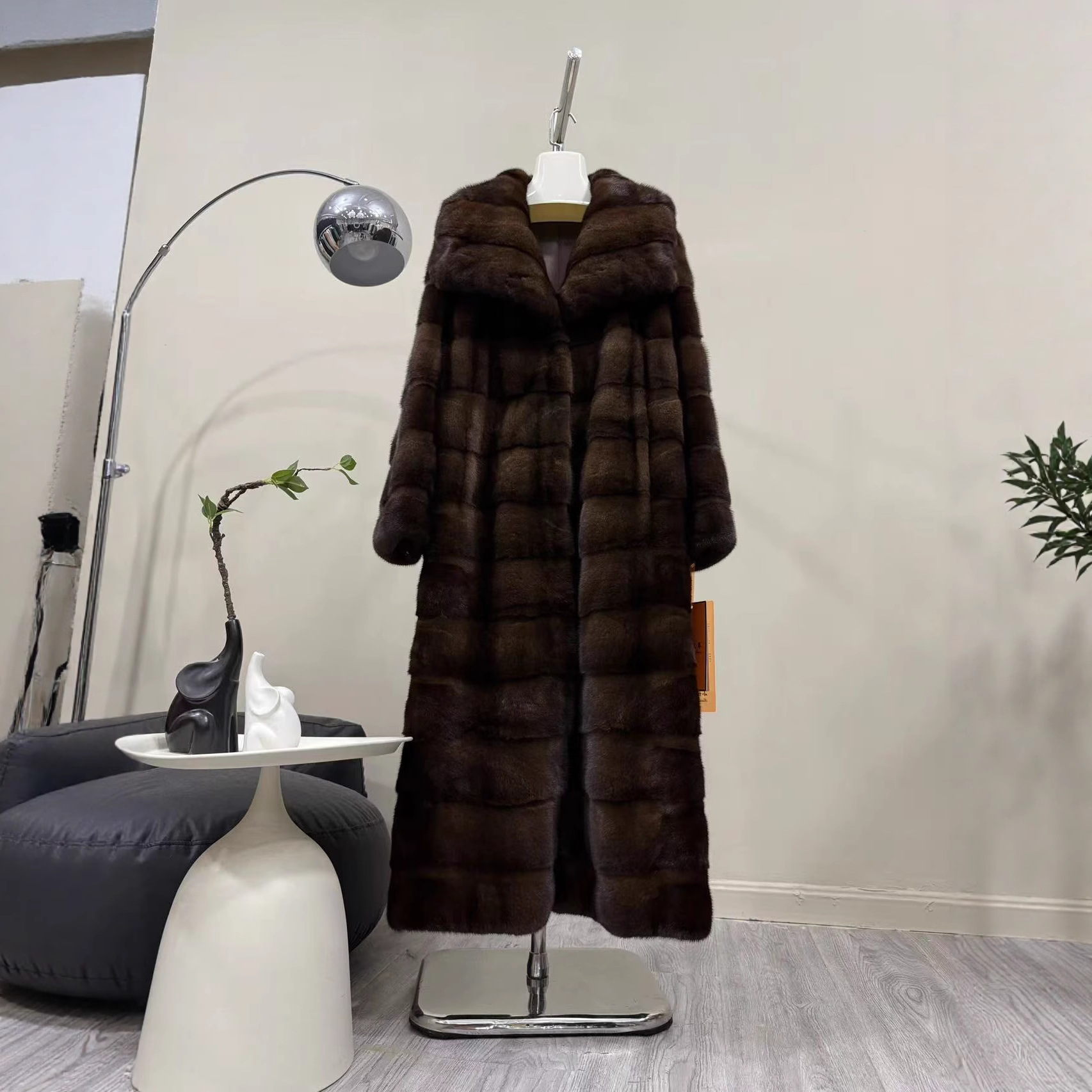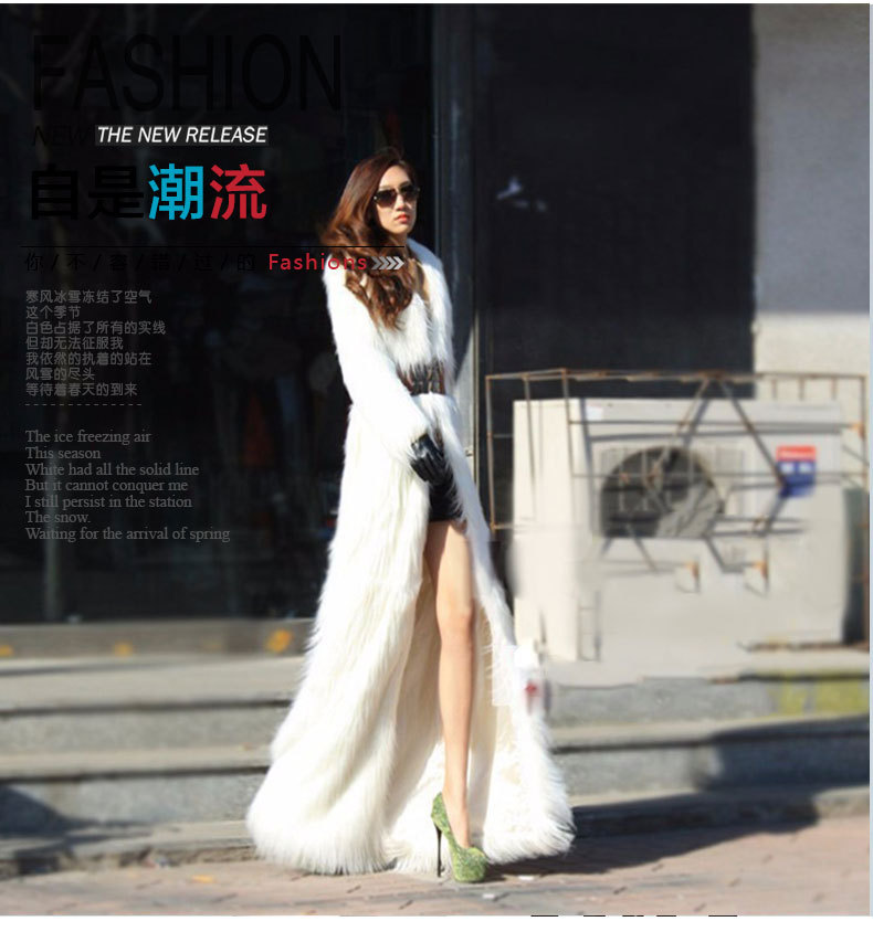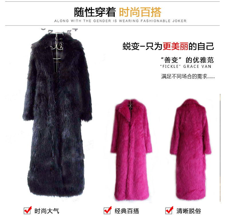 跨境ebay亚马逊女装环保水貂毛仿皮草毛毛外套欧美加长款连帽大衣