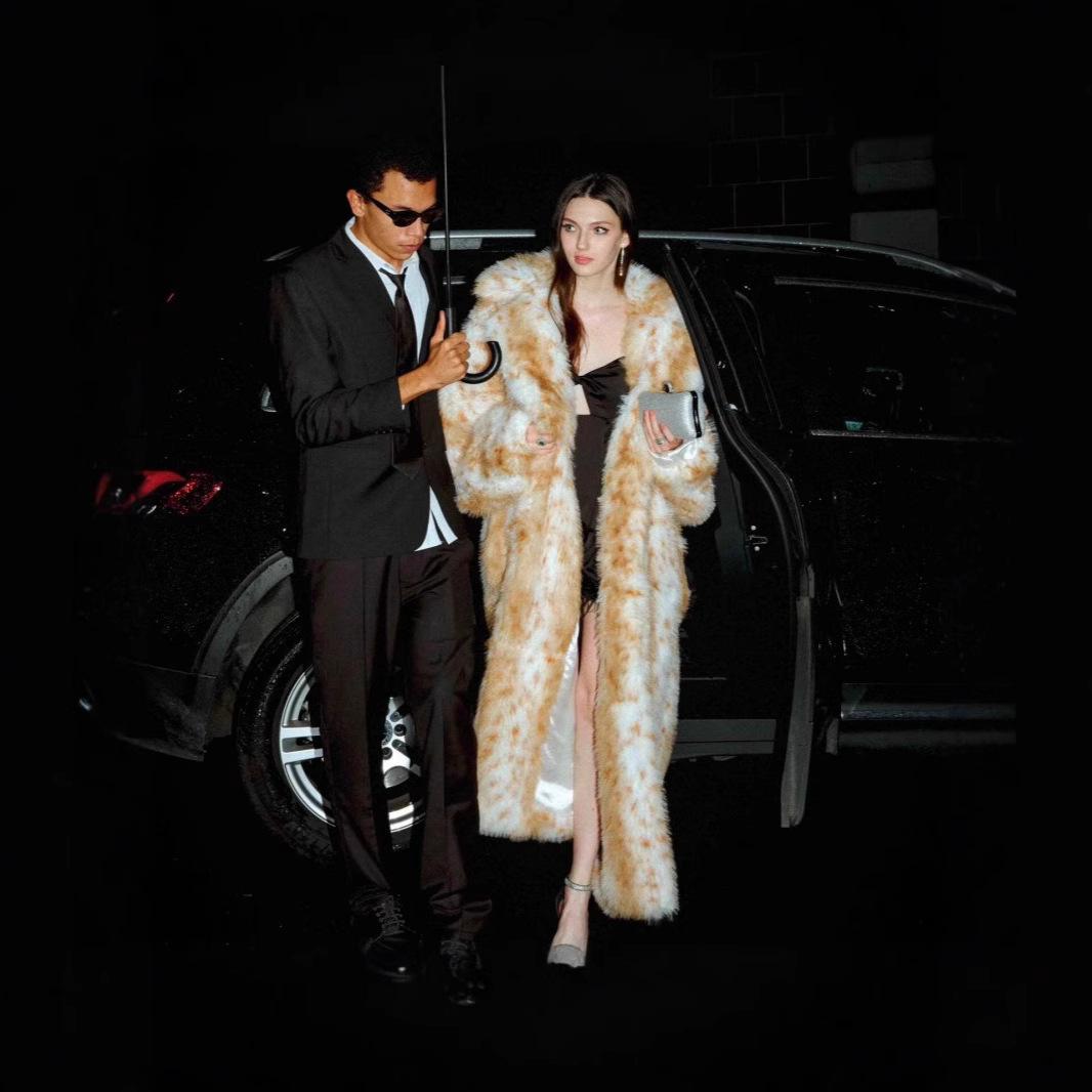 欧美跨境外贸爆款小香风毛毛外套女仿狐狸毛加厚高级感千金风外套