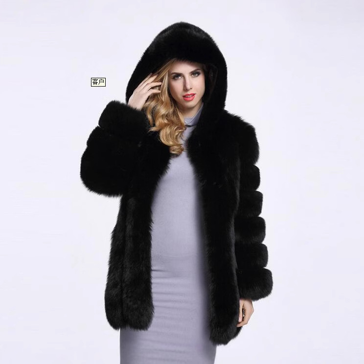 欧米のクロスボーダーの毛皮のコートの婦人服の大きいサイズは帽子のwishの外国貿易の保温の毛皮の中で長いタイプのキツネの毛のコートを連ねます。