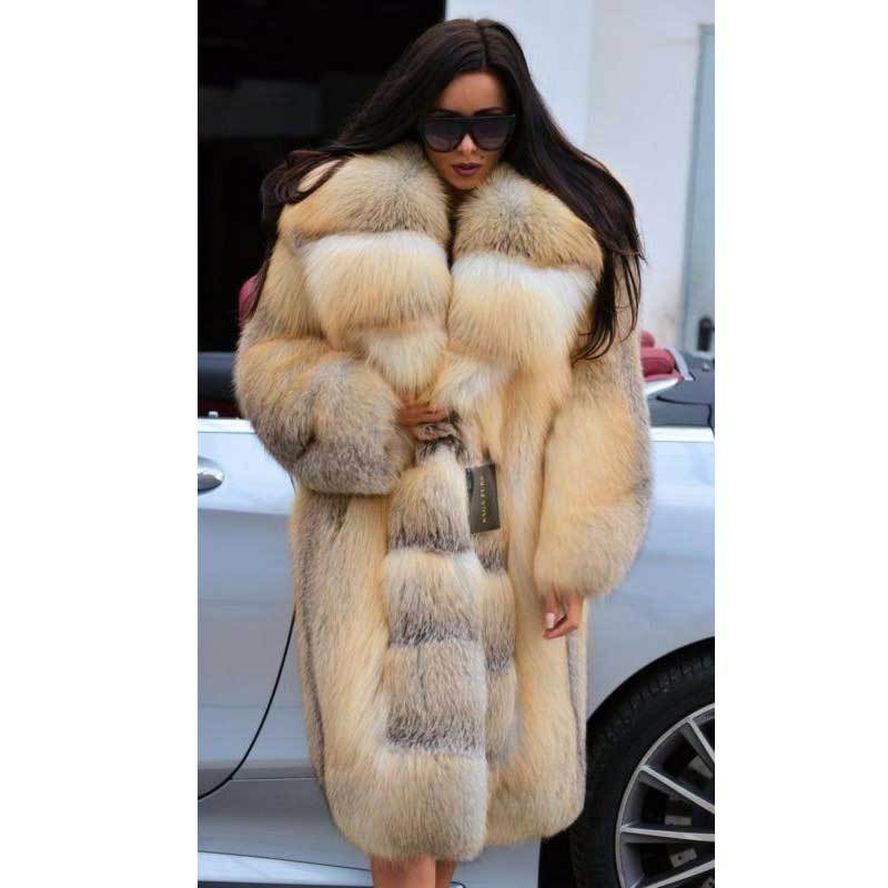 新型2020超長皮草コート女装欧米の皮草コートはキツネの毛に似せて、長いタイプの保温修身をしています。