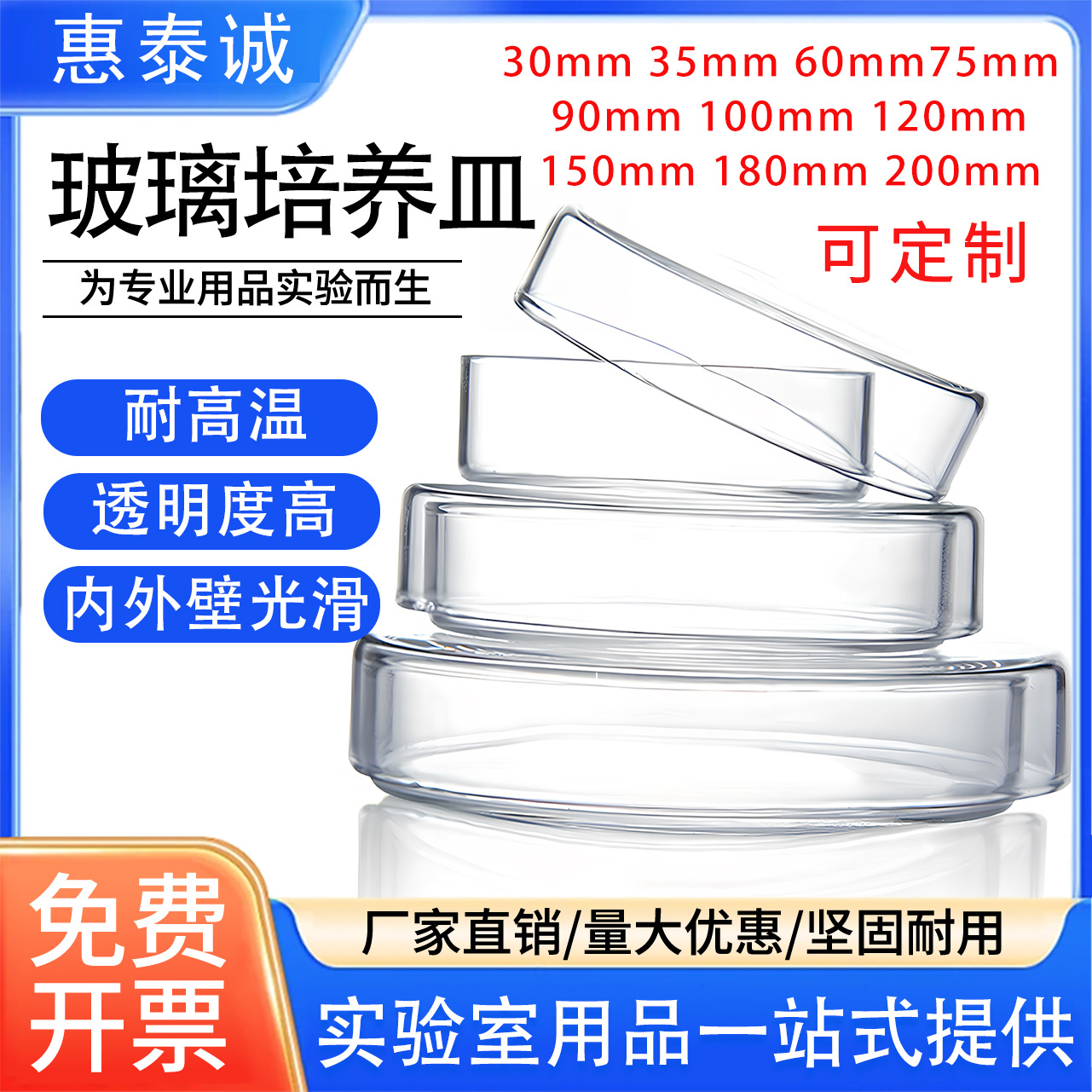 高ホウ素シリコンガラス培養皿生物実験細胞細菌培養皿60 75 90 100 120 150mm