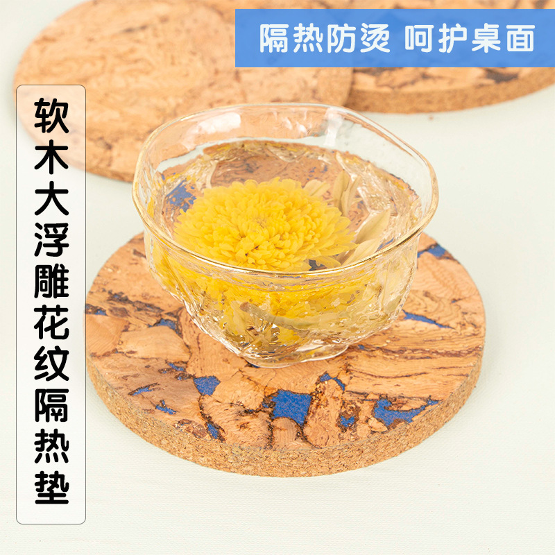 コルク大レリーフ模様パーマ防止断熱食マットポットコーヒーカップマット茶道水松板マット
