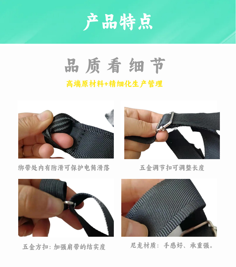 カスタマイズ可能な黒色ナイロン製懐中電灯用電源ストラップ、紛失防止、アウトドアスポーツ用LED懐中電灯ショルダーストラップ、アウトドア用品