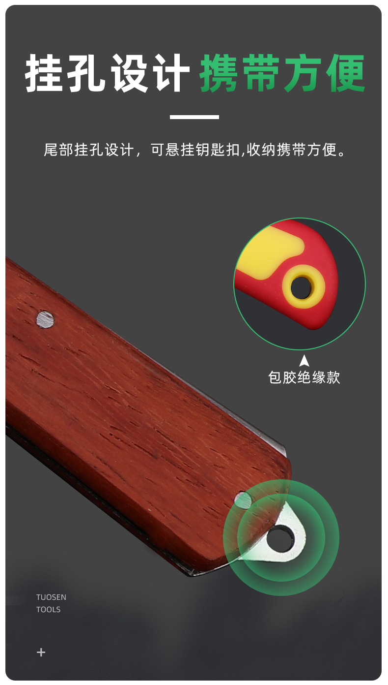 拓森金物工具多機能ステンレス折り畳み電線ケーブル絶縁剥離刃電気木柄電気ナイフ