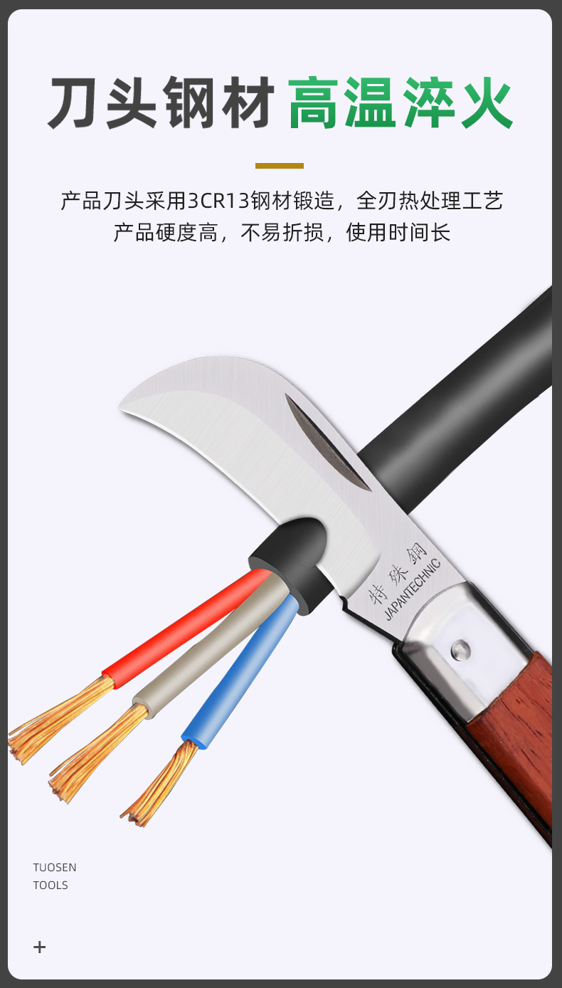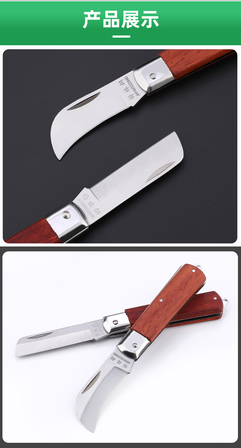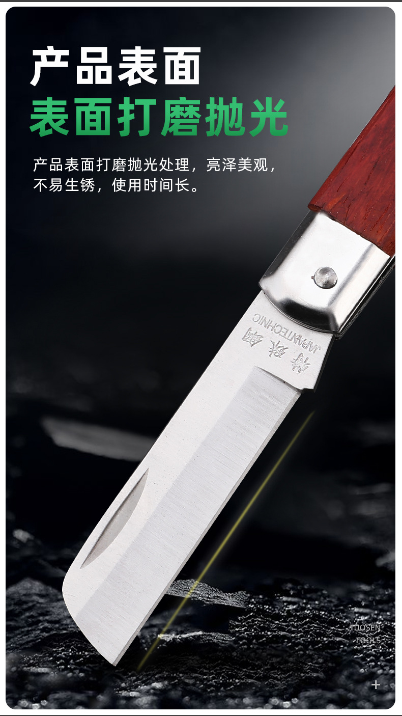 卸売り電気工刀木柄折り畳み直刃曲げ刃多機能特殊鋼剥皮線刀電線刀工具