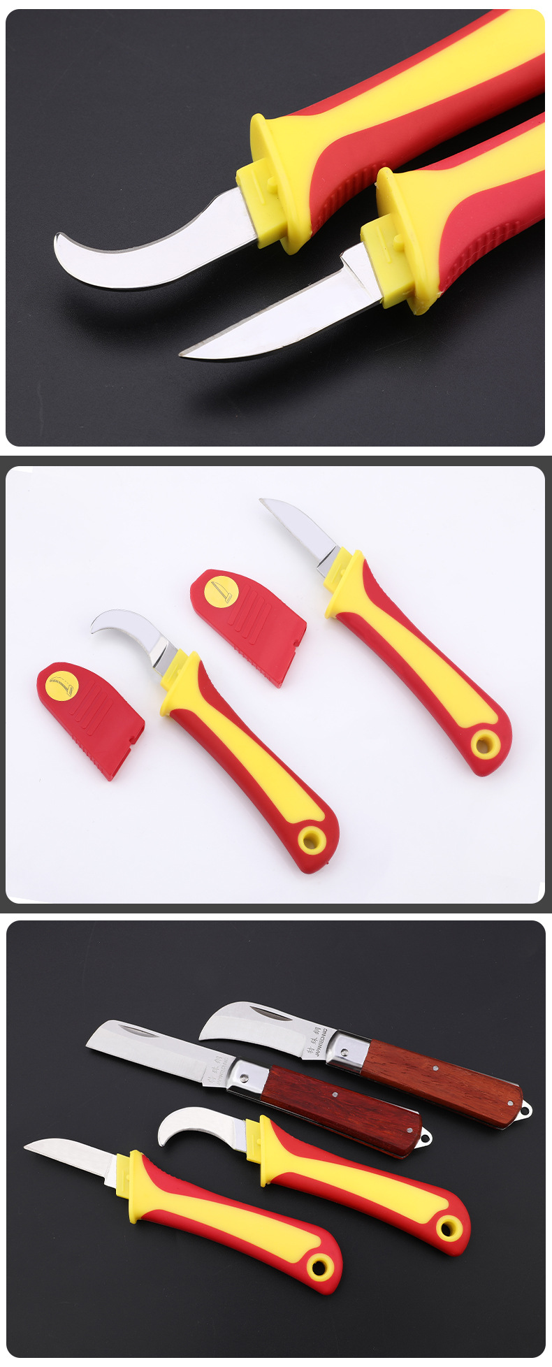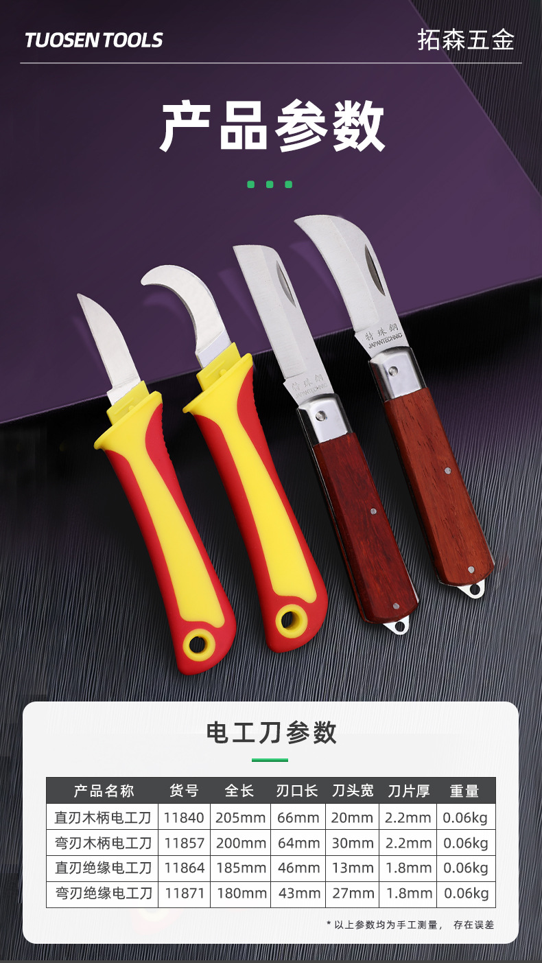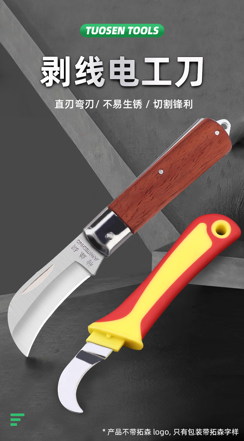 卸売り電気工刀木柄折り畳み直刃曲げ刃多機能特殊鋼剥皮線刀電線刀工具