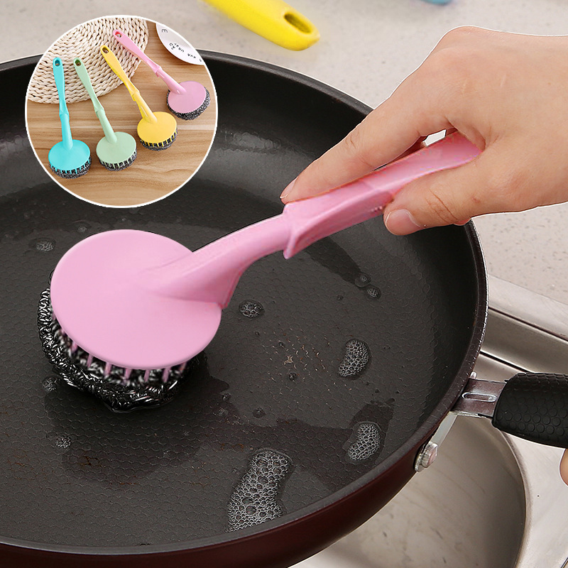 不伤锅清洁球钢丝球带手柄锅刷家用长柄刷子带塑料把手洗碗神器