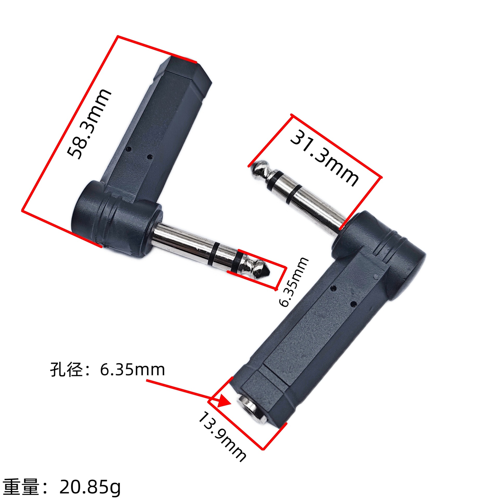 6.35公转母立体双声道插头 L型6.35公转母 音响麦克风音频转接头