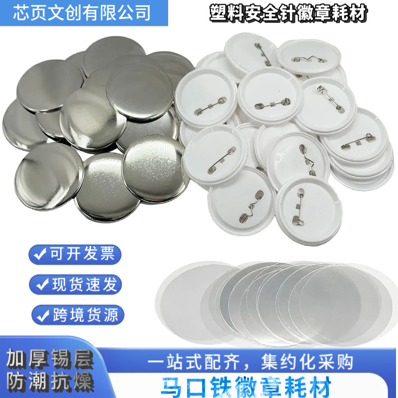 メーカー直送のブリキ製スプリングピンバッジ消耗品、プラスチック製のバッジ素材、DIY用の無地バッジアクセサリー