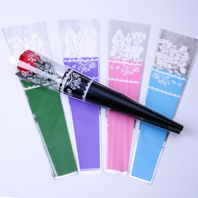 新鮮な花の袋の簡単なレースの単一の袋の生花の包装袋T型のビニール袋のバレンタインデーの生花の袋