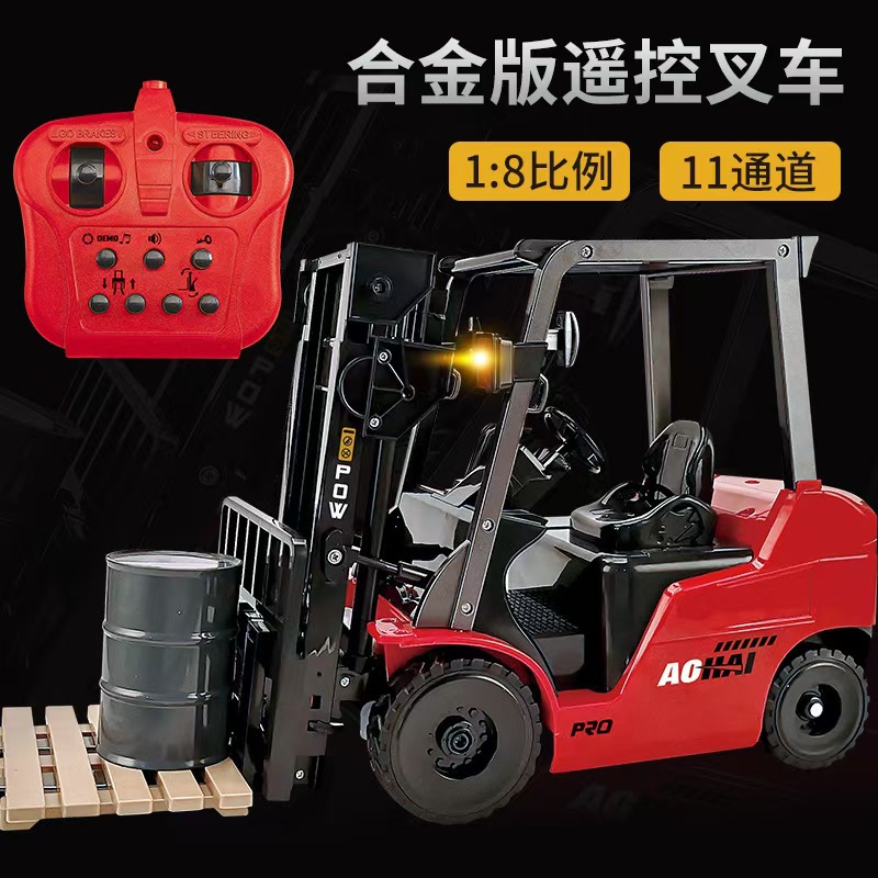 2.4G無線リモコン合金フォークリフトクレーン11通シミュレーションフォーククレーン模型電動音光玩具車