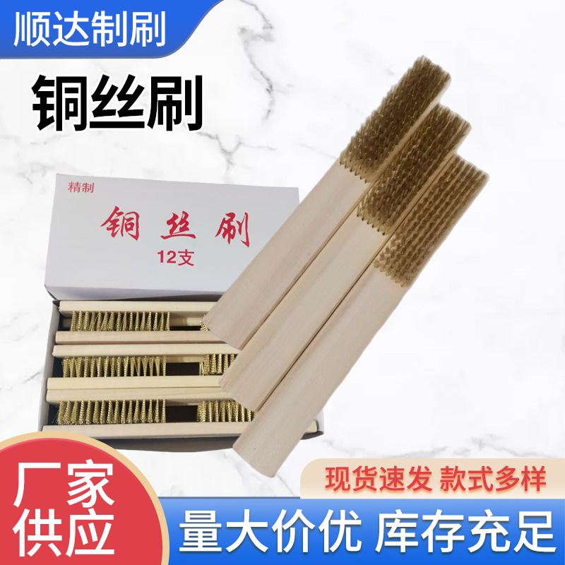 批发文玩核桃专用铜丝刷 木柄除锈打磨清洁刷 顺达镀铜丝刷