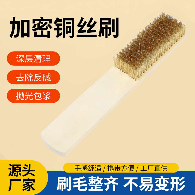 木质手柄加密铜丝刷除垢打磨抛光刷高密度不掉毛铜刷源头厂家批发