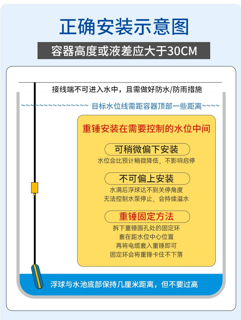 浮球开关水位控制器抽水液位计水泵水塔水位感应器自动上水