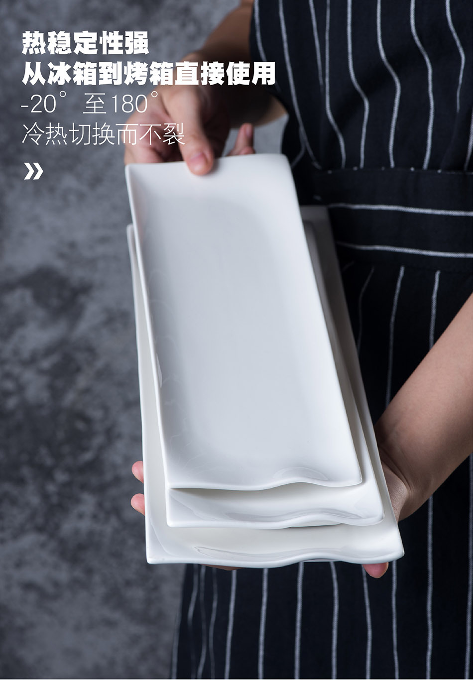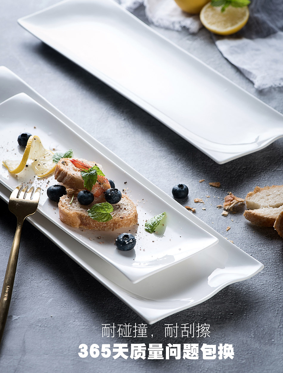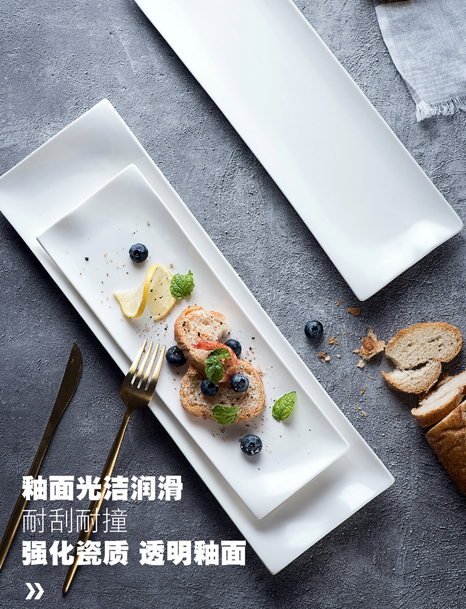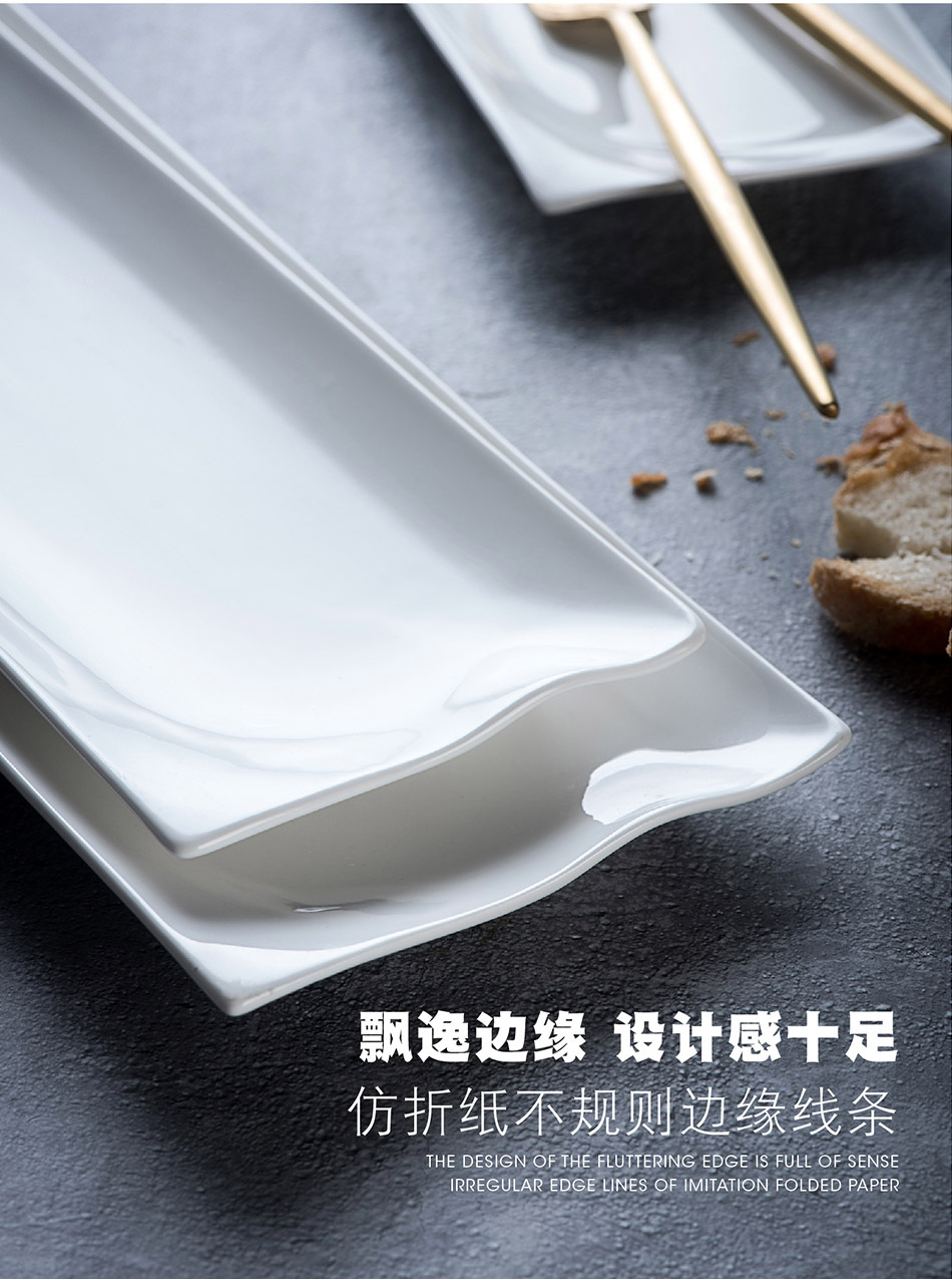 純白創意長条皿蒸し魚皿家庭用陶磁器食器寿司皿ホテルレストラン用長方皿