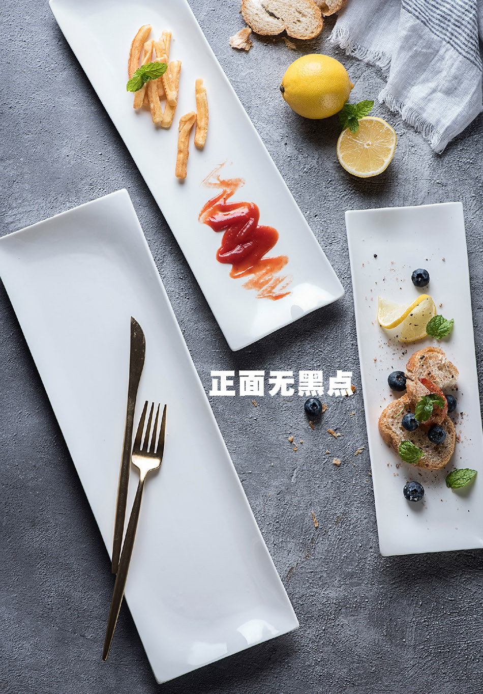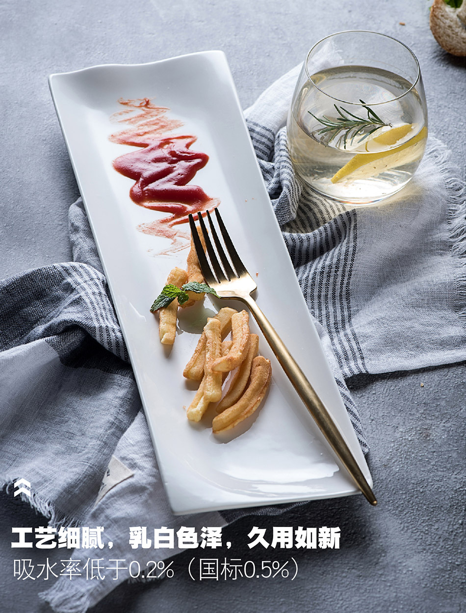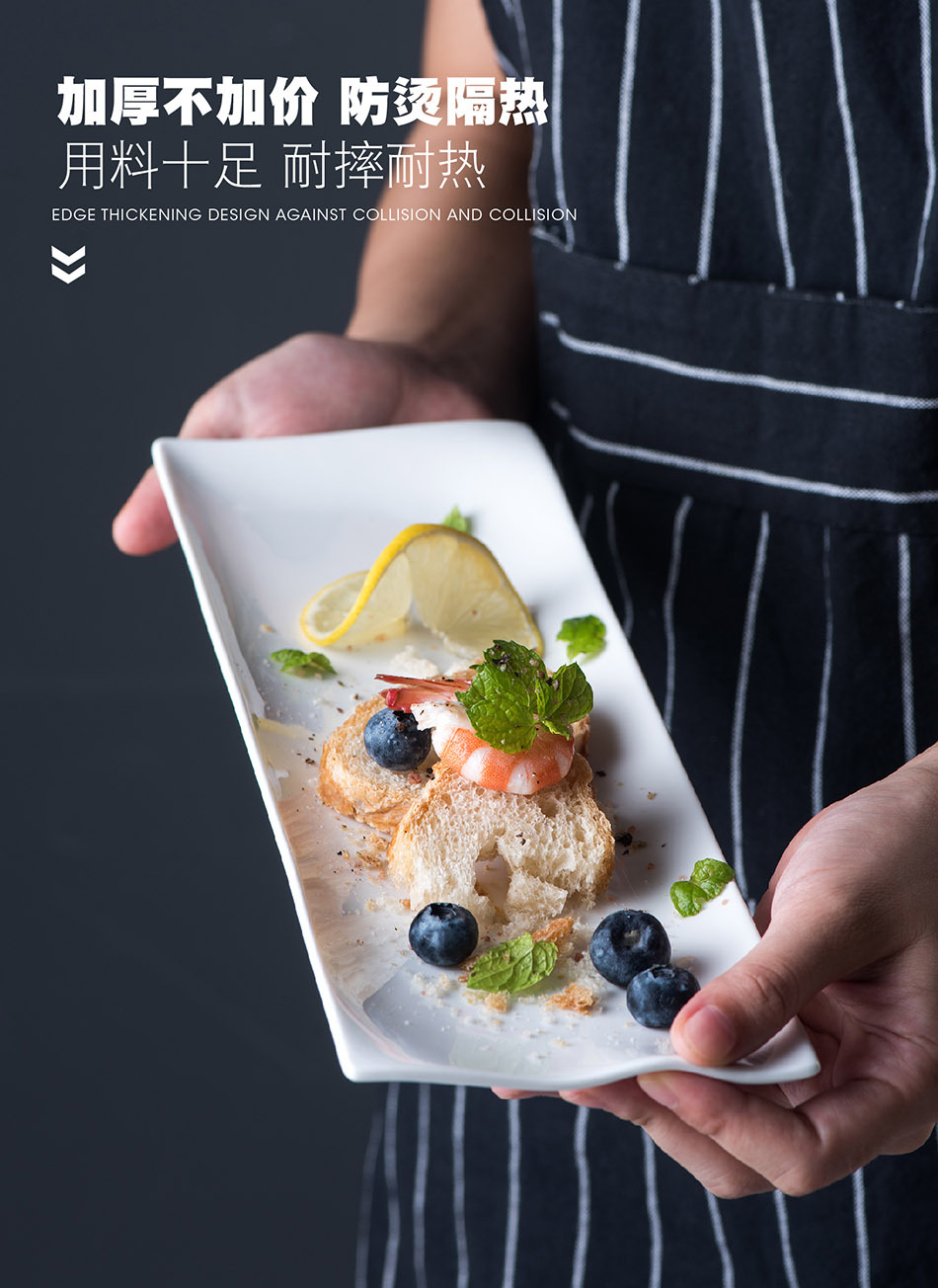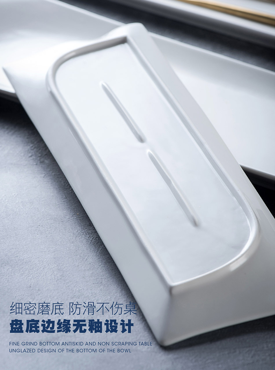 純白創意長条皿蒸し魚皿家庭用陶磁器食器寿司皿ホテルレストラン用長方皿