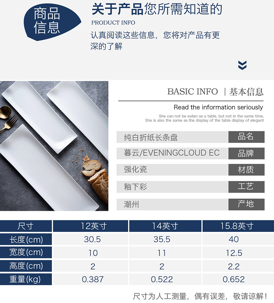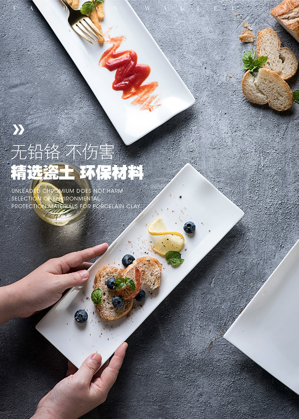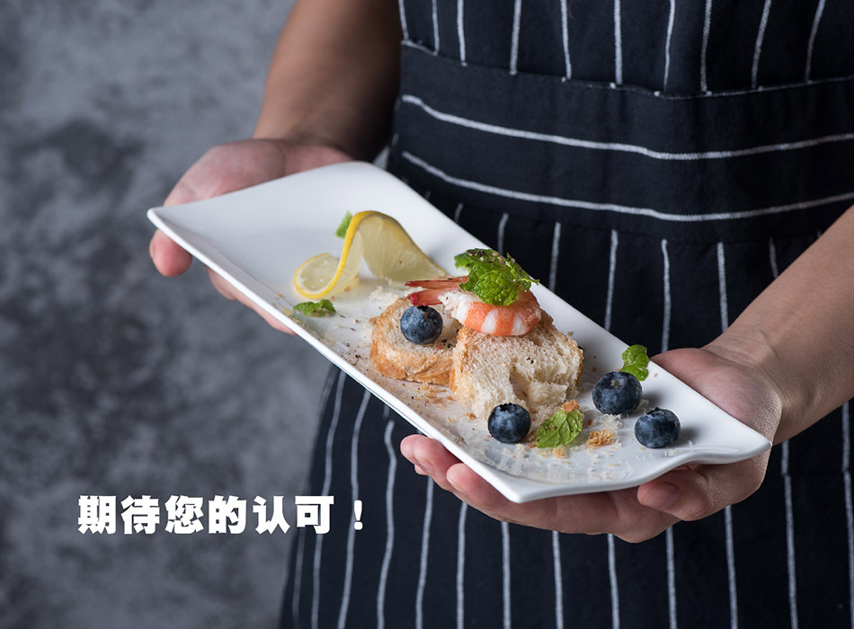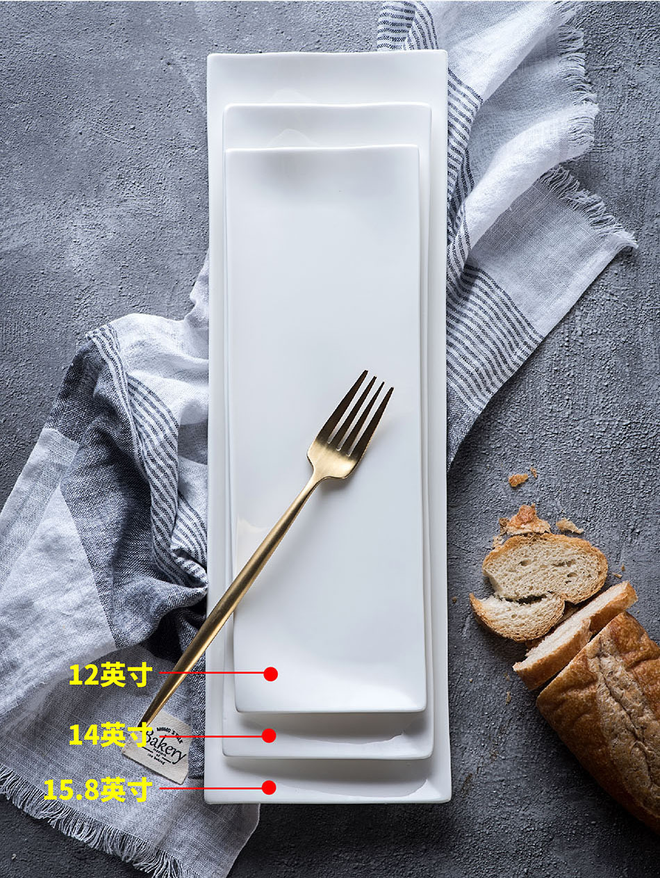 純白創意長条皿蒸し魚皿家庭用陶磁器食器寿司皿ホテルレストラン用長方皿