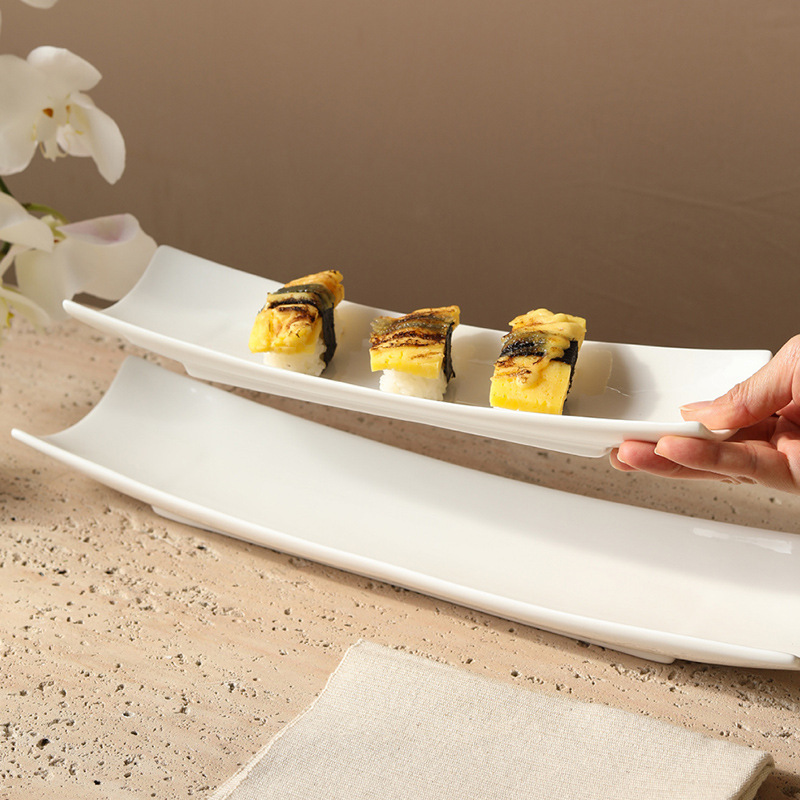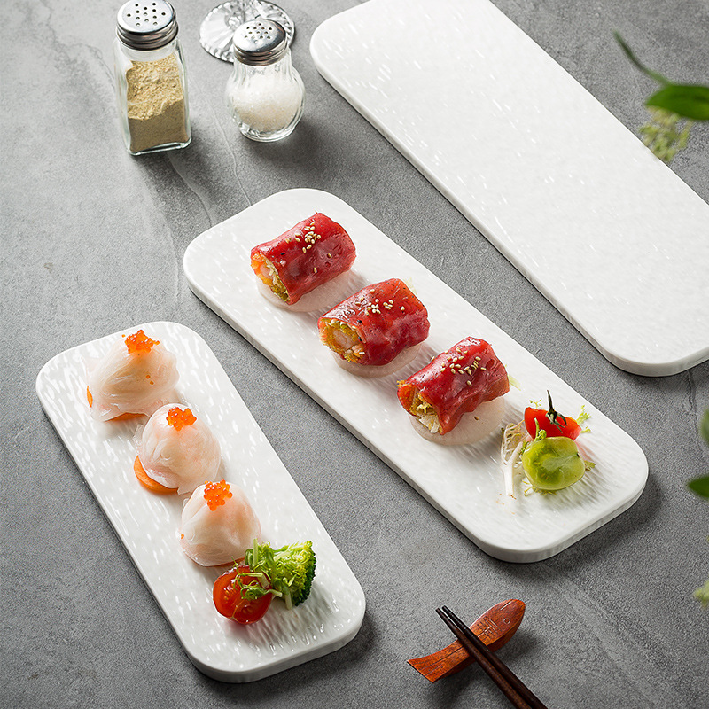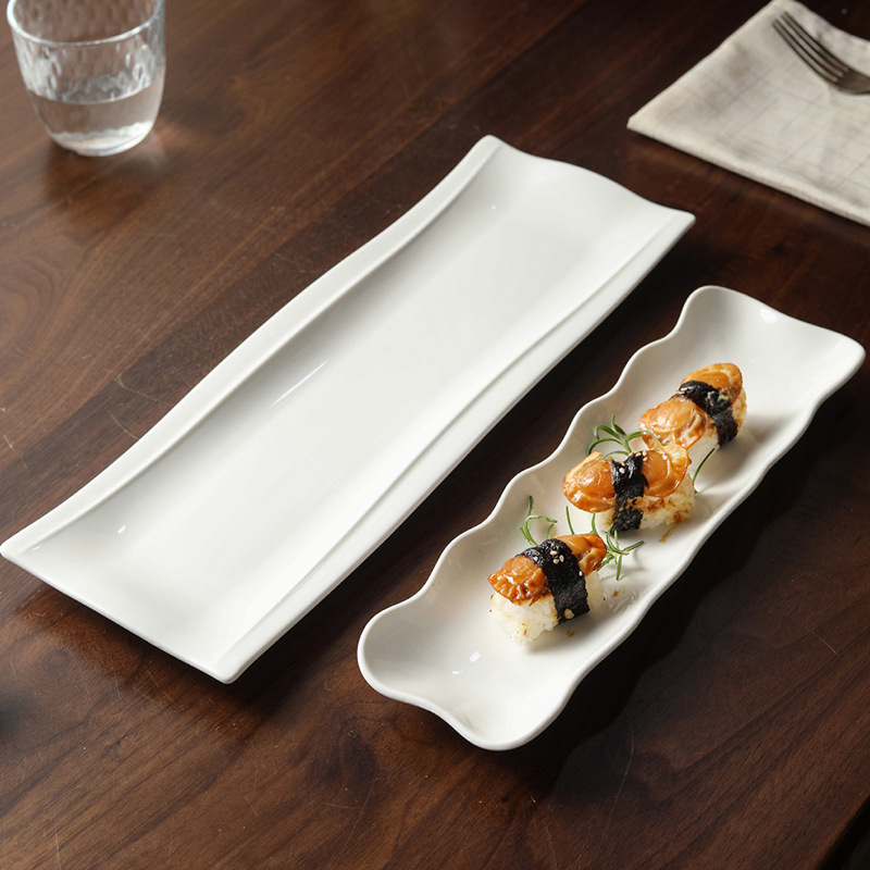 カスタム純白陶磁器食器創意長条日本式食事皿寿司皿長方形お菓子焼肉皿卸売り