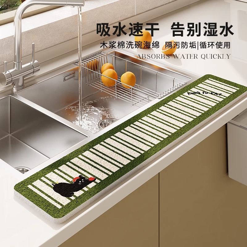 厨房台面水槽吸水海绵卫生间水龙头沥水垫洗手台水池防溅水木浆棉