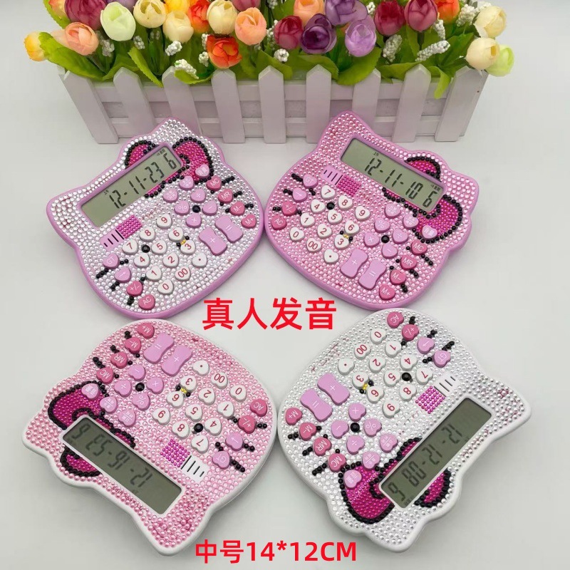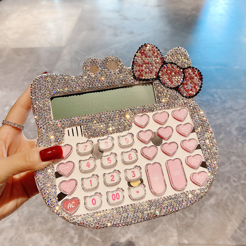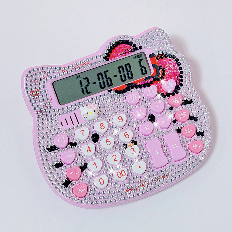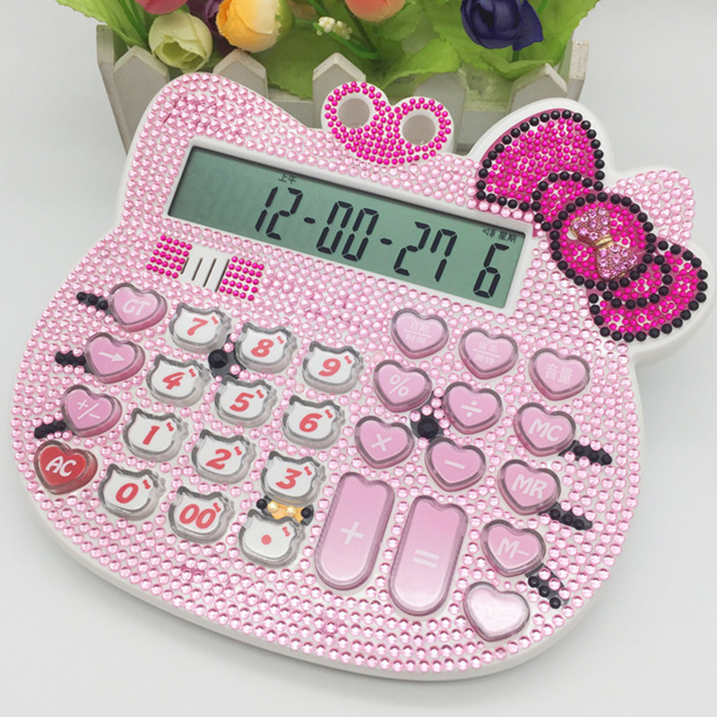 小台式水晶带钻卡通可爱造型12位数双电源设计计算器