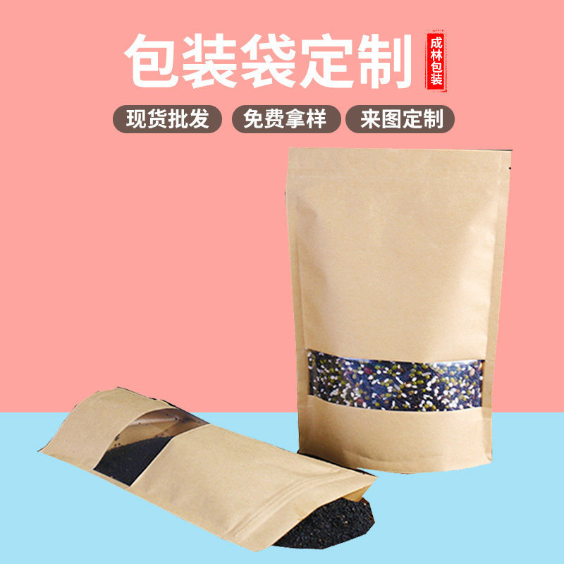 クラフト紙八辺封袋フロスト開窓クラフト紙袋茶葉乾果八辺封犬食糧袋食品包装袋