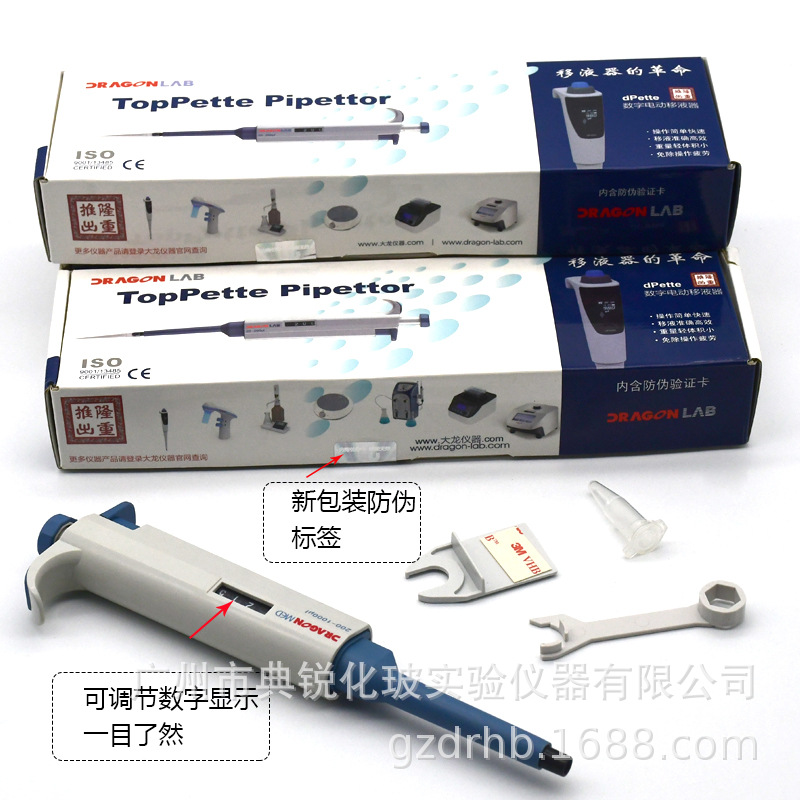 大龍単道調整式ピペット銃加液器サンプラー2ul-20ul内に偽造防止検証カードが付いています。