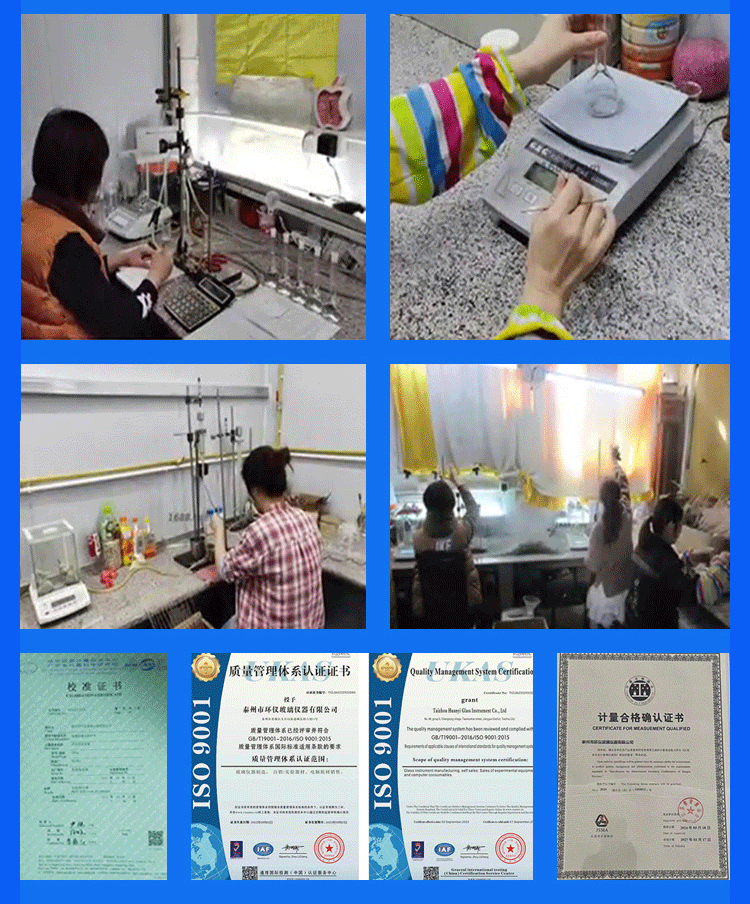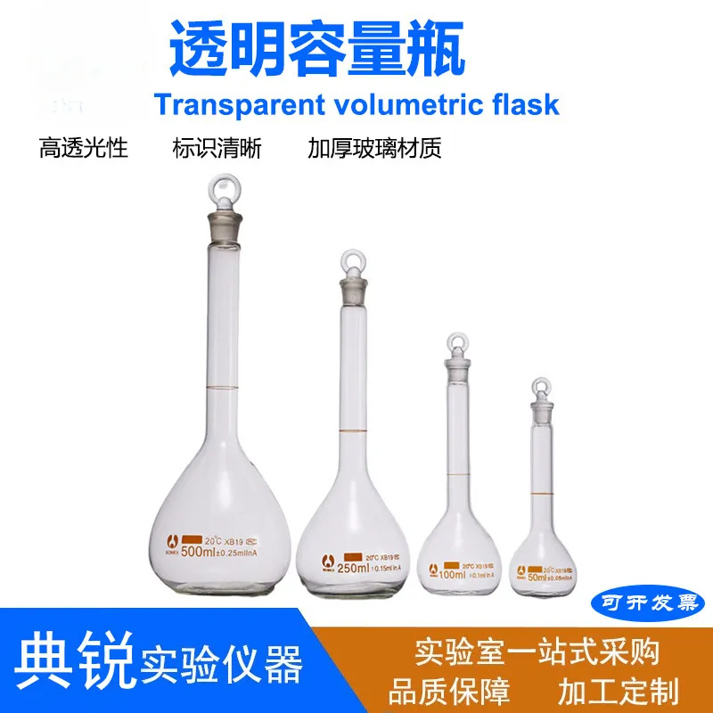 ガラス容量瓶は栓付きで密閉されています。高ホウケイ酸透明容量瓶は厚いボトルで高温に耐え、正確な容量を保ちます。