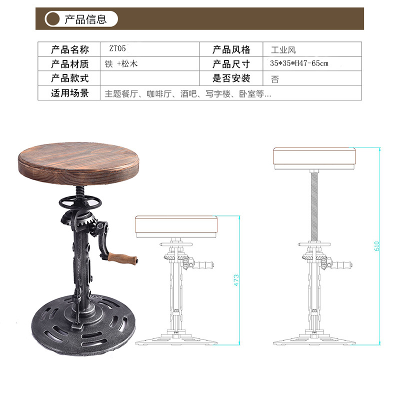 工場直売工業風鉄芸バー椅子客間家庭用昇降可能バー椅子レストラン実木シートバー腰掛け