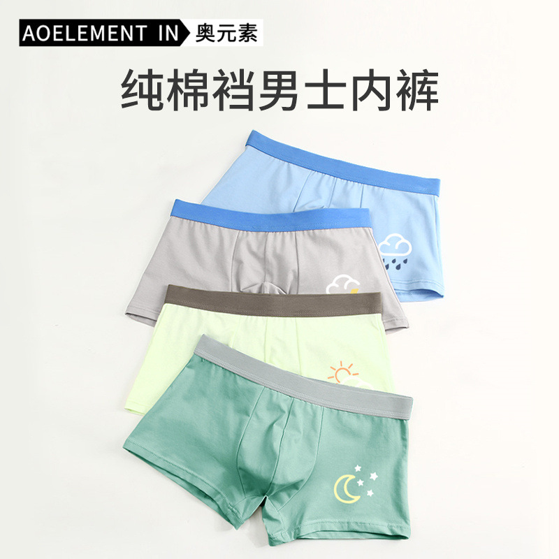 男士纯棉透气舒适平角内裤中腰四角亲肤柔软青少年内裤头男生裤衩