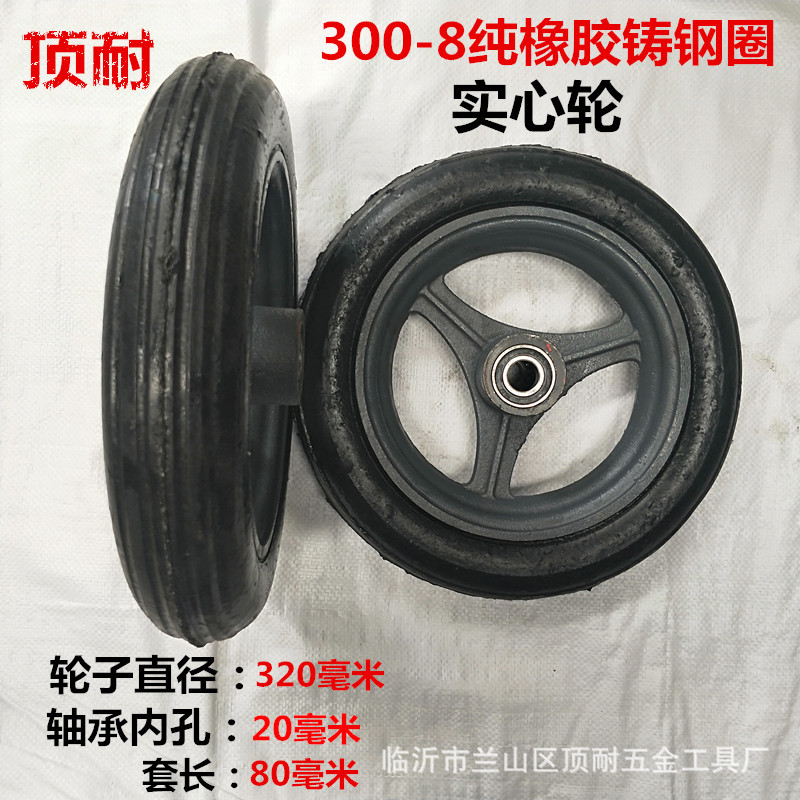 14寸300-8顶耐铸钢橡胶手推车免充气脚轮小吃车轮小吃车专用