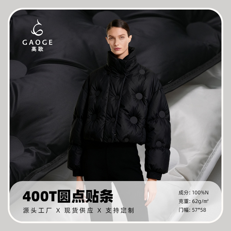 400T圆点贴条(充绒)面料防绒无缝直充式 羽绒服棉服面料里料