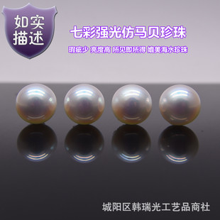 仿天女珍珠炫彩强光马贝玻璃水晶珍珠半孔akoya散珠饰品配件批发