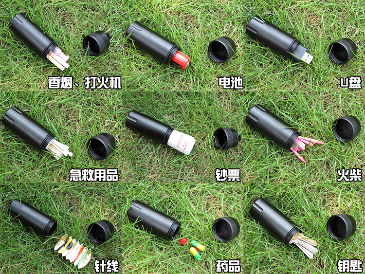 防水存储罐第一要素要全气候环境下保证防水保持内部物件干燥。整体尺寸还不能做太小, 大而紧凑才完美,易携带好操作。此防水罐外长达到10cm内长7.9cm塞一颗18650锂电池绰绰有余。放置渔具钩线/火种/救急药品/钞票/等等的小物件均可。附有橡胶防水圈,衔接螺纹处加长加密加深提升防水级别。罐口不规则开口(扇形)增大使得内部物件取放更加方便。