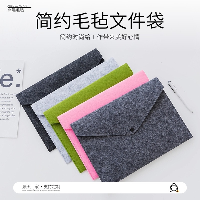 クロスボーダー無地フェルトドキュメントバッグ A4 スナップビジネス収納袋封筒フェルトブリーフケース契約書ドキュメントバッグ