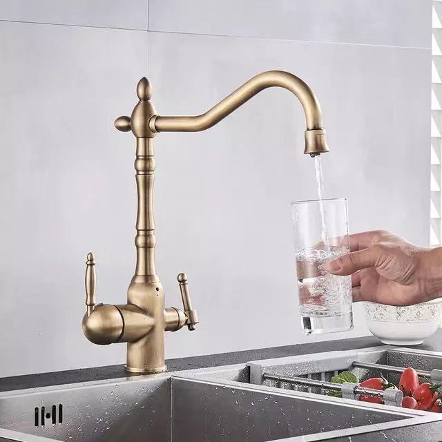 ヨーロッパ式の古風な台所用の清潔な蛇口の台所の三合一の蛇口の冷熱は回転することができます。
