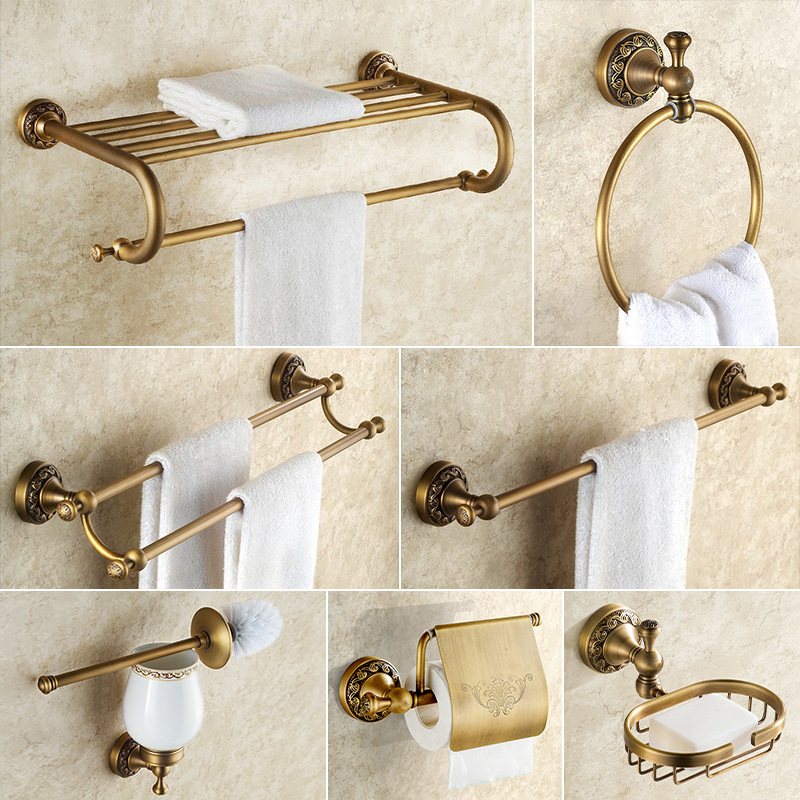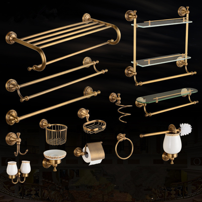 アンティーク銅バスタオルラックヨーロッパ彫刻タオルラックバスルームトイレ収納ラックバスルームアクセサリーセットクロスボーダー