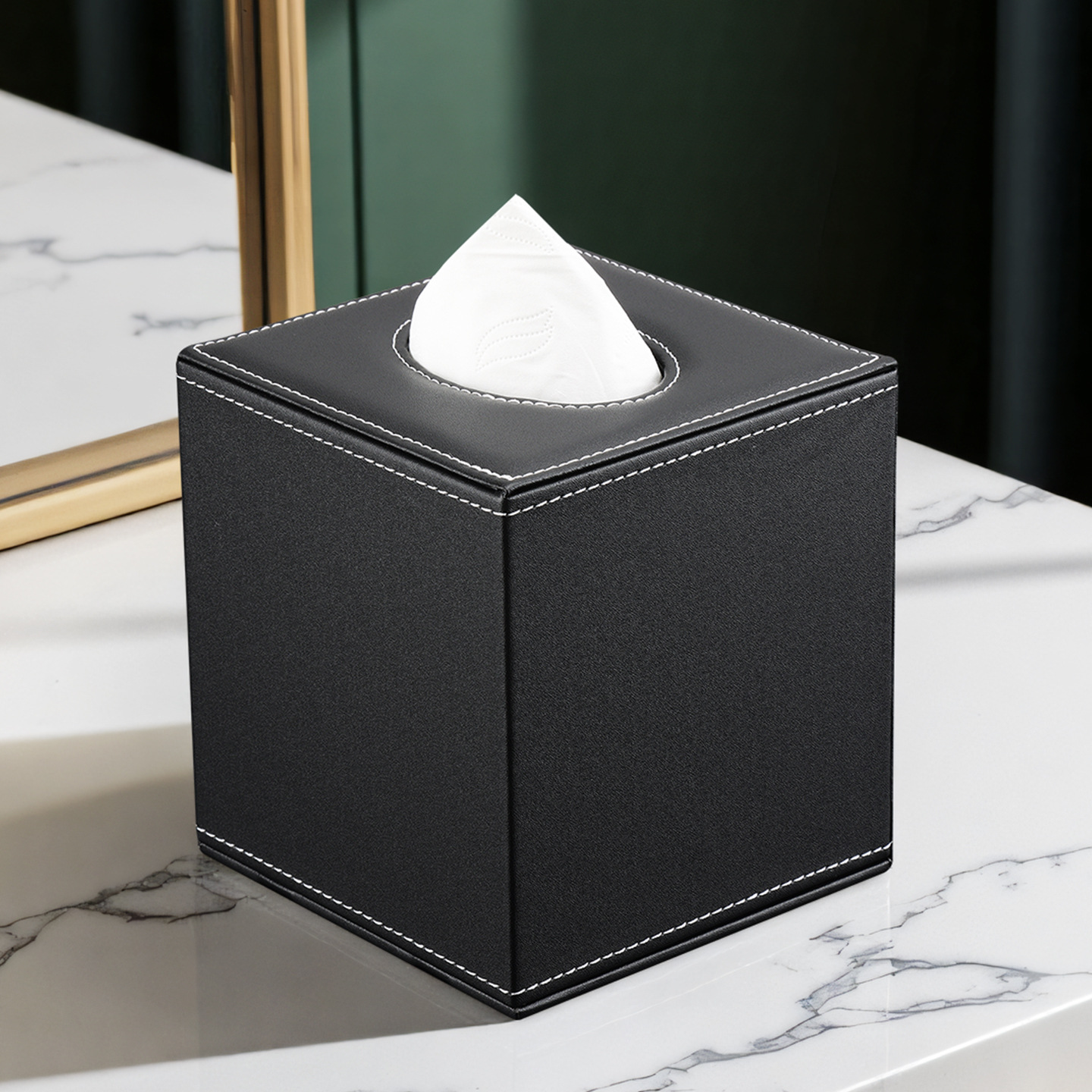 軽い贅沢なティッシュボックスのリビングルームのお茶の高級なデスクトップの革の紙は箱の家庭用ホテルのレストランの高い顔の値を引き出します。