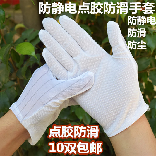防静电防滑手套是采用采用韩国涤纶丝混合进口导电丝织成具有良好的防静电性能手掌点塑具防滑离防静电效果,使作业时不易滑手。导电 纤维间距为1CM,手套具有极好的弹性和防静电性能,避免人体产生的静电对产品造成破坏,它适合在电子行业、半导体、无尘车间及日常生活中广泛使用。   用于需用手套操作的防静电、净化无尘车间环境。穿戴防静电手套可避免操作人员手指直接接触静电敏感元器件,并能安全泄放操作人员所带的人体静电荷。它是半导体工业,光电工业,半导体制造业、电子显象管制造业、电脑主板生产企业、手机生产厂等工作人员工作时必需穿戴的。