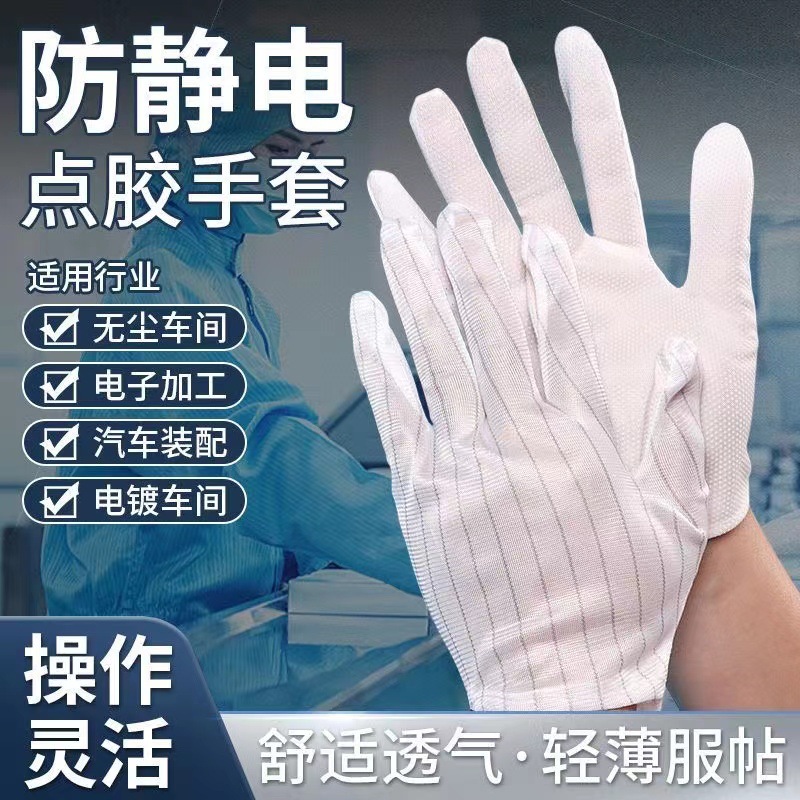静電気防止点ゴム手袋二重五本指点プラスチック無塵工場電子工場の作業縞厚手点ゴム手袋