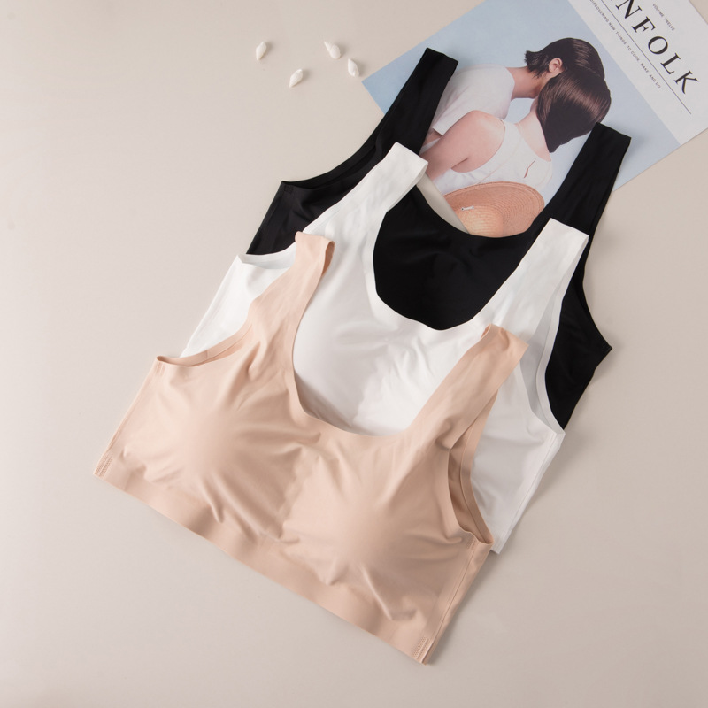 つや出し防止氷糸通気孔底部の薄い一枚形の傷なし胸に包まれたスチールリングなしベストスポーツブラジャー