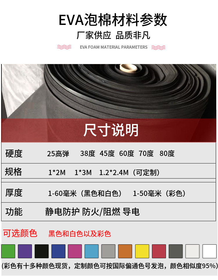 1米eva泡沫板泡棉海绵纸白色黑色片材eva板材料泡沫板海棉纸cos用