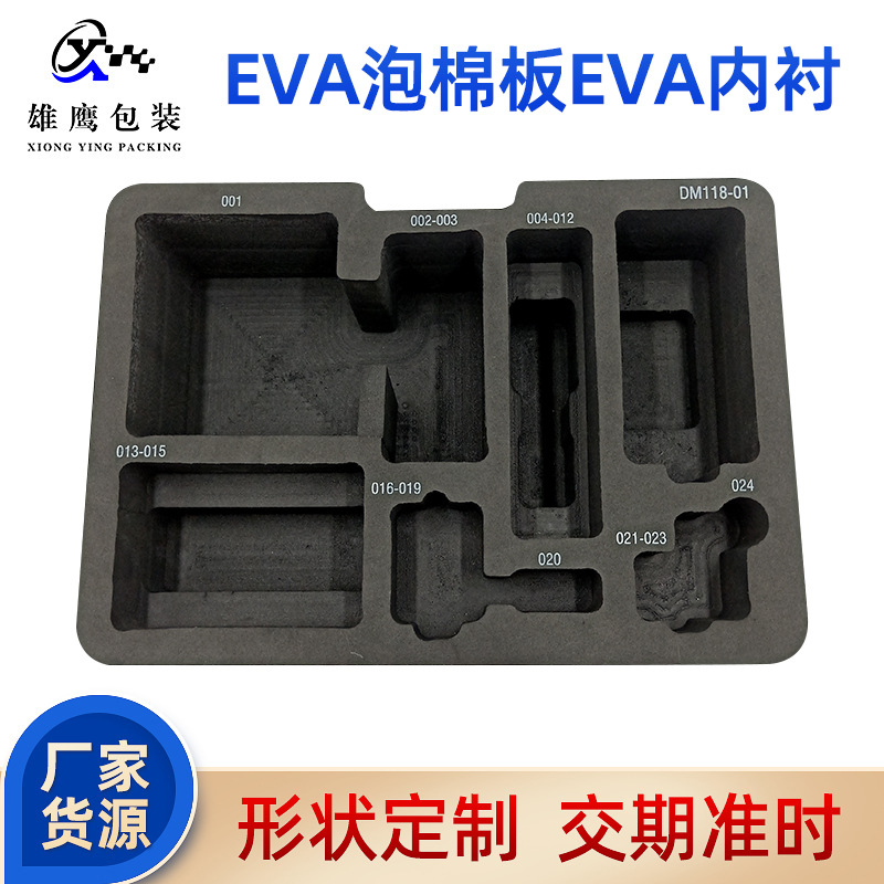 40度黒色EVA内側サポート、黒色EVA内張り、彫刻入りEVA包装、印刷ロゴ入りフォーム緩衝材